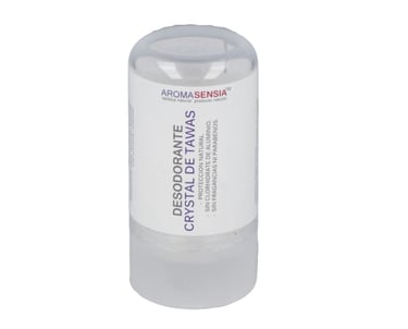 AROMASENSIA ® Crystal de Tawas es un desodorante natural que controla el olor corporal de forma totalmente natural sin interferir con tu cuerpo. Mojado ligeramente y aplicado en las axilas deja una fina e invisible película que impide el crecimiento bacteriano responsable del mal olor. Fabricados en alumnbre potásico 100%, tienen las siguientes ventajas sobre otros desodorantes: