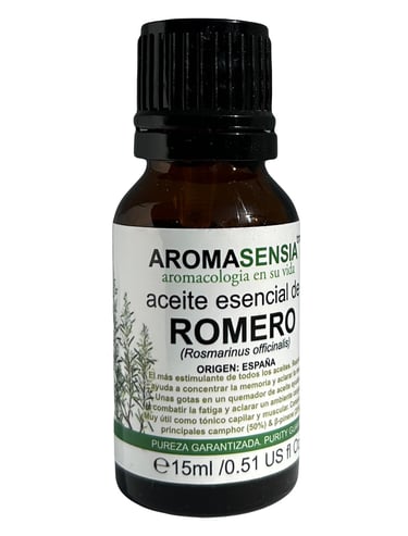 El aceite esencial de romero es un aceite esencial destilado de las hojas de la planta de romero. Tiene un aroma herbal y fresco y se utiliza en la aromaterapia y en la medicina alternativa debido a sus propiedades terapéuticas.