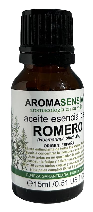El aceite esencial de romero se compone principalmente de cineol y alcanfor, que son compuestos químicos conocidos por sus propiedades antiinflamatorias y analgésicas. También contiene ácido rosmarínico, un antioxidante potente que puede proteger contra el daño celular y reducir el riesgo de enfermedades crónicas.